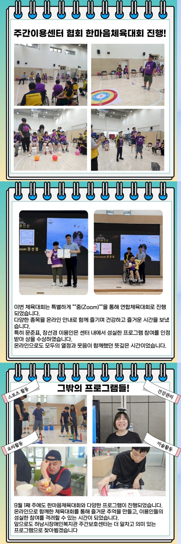 9월 1째 주에도 한마음체육대회와 다양한 프로그램이 진행되었습니다.