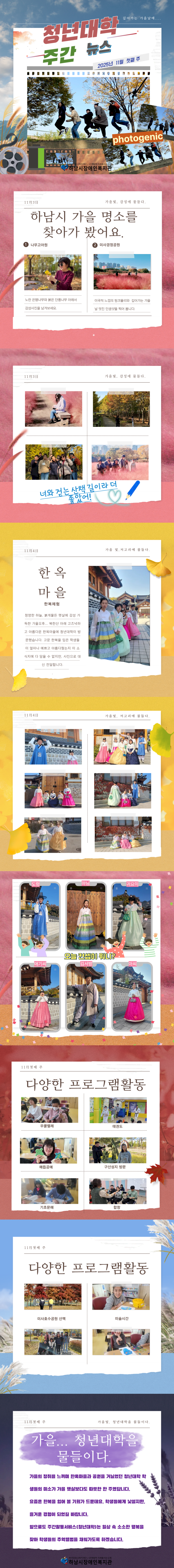 앞으로도 주간 활동 서비스(청년 대학)는 일상 속 소소한 행복을 찾아 학생들의 추억 앨범을 채워가도록 하겠습니다.