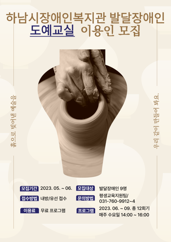 하남시장애인복지관 발달장애인 도예교실 이용인 모집