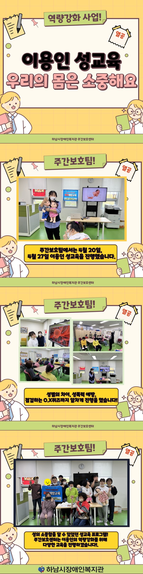 4월 20일, 4월 27일 이용인 성교육을 진행했습니다.