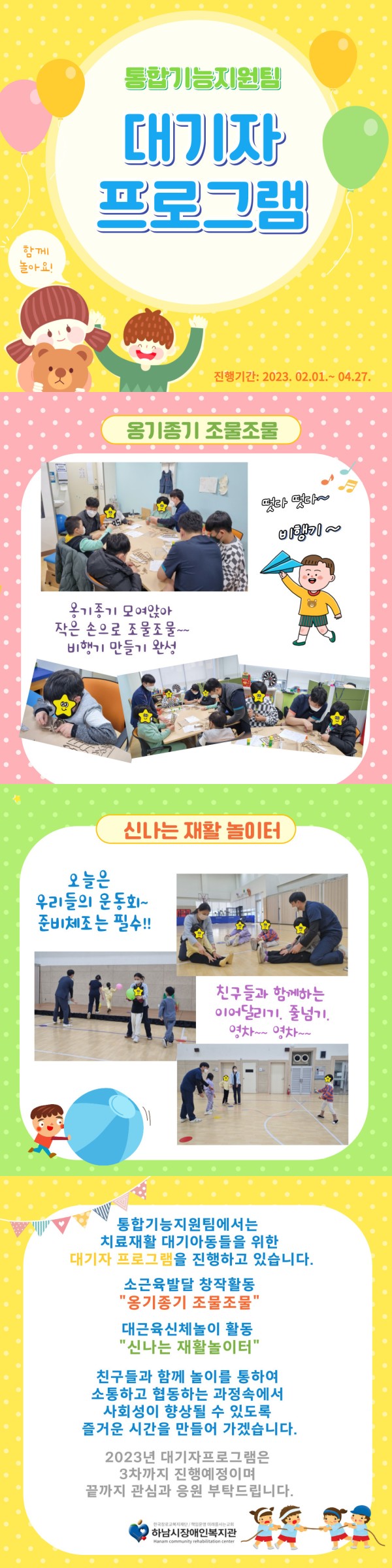 공지 [통합기능지원팀] 대기자프로그램 '옹기종기 조물조물' '신나는 재활놀이터'