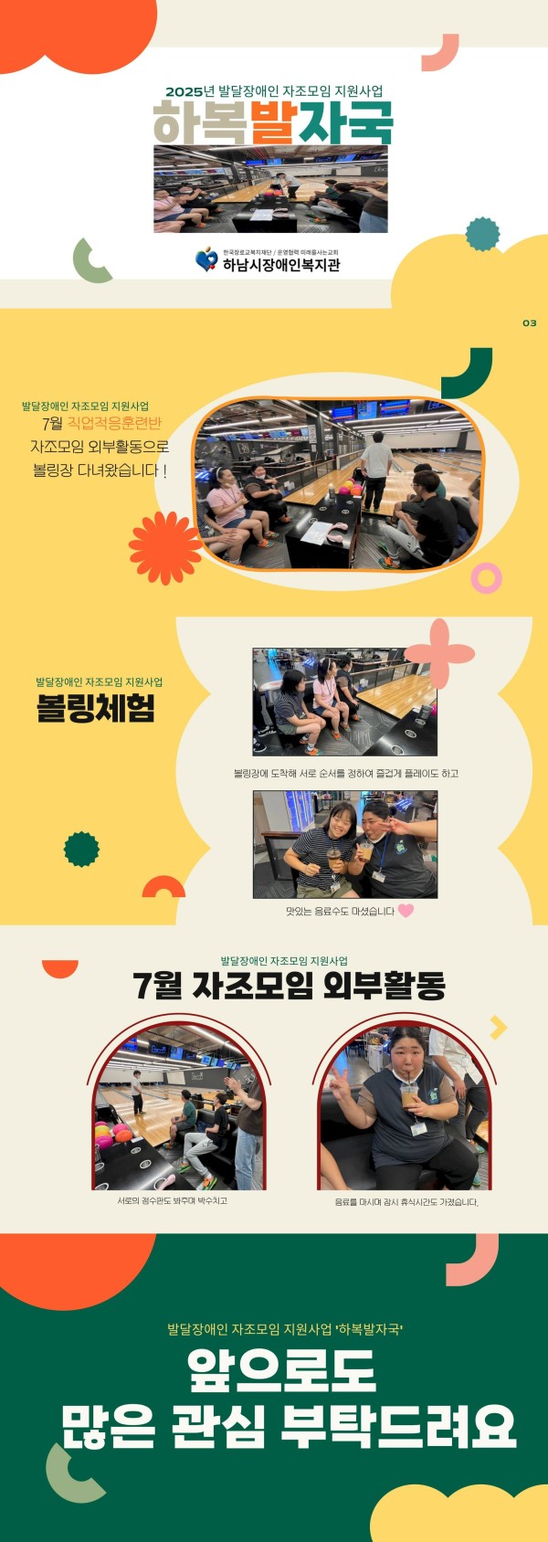 발달장애인 자조모임 지원사업 7월 직업적응훈련반 자조모임 외부활동을 볼링장 다녀왔습니다 !