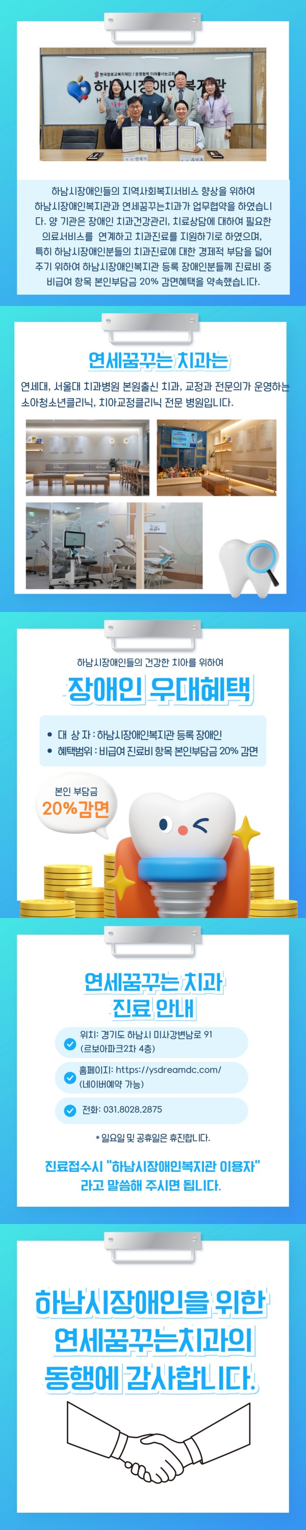 연세꿈꾸는치과의 하남시장애인복지관과 아름다운 동행 감사드립니다.