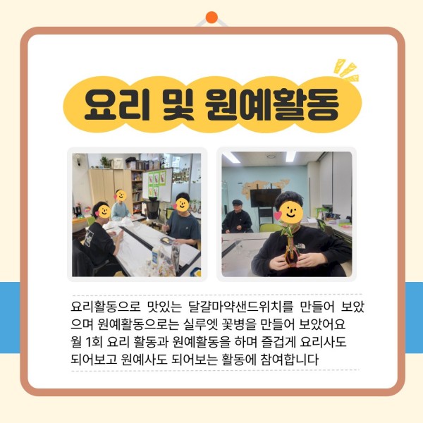 월 1회 요리 활동과 원예 활동을 하며 즐겁게 요리사도
