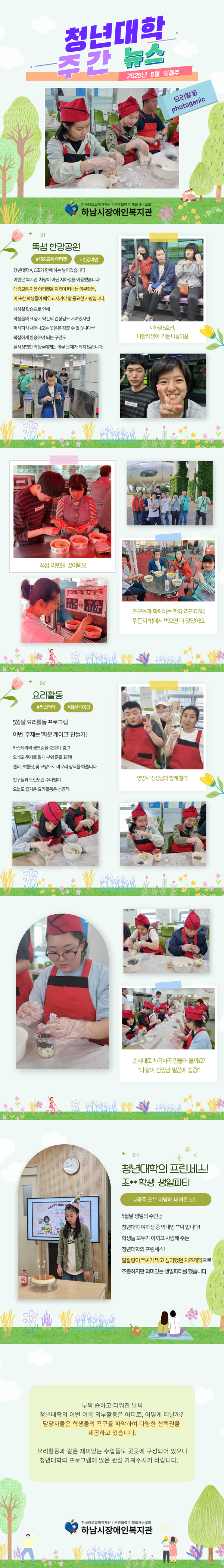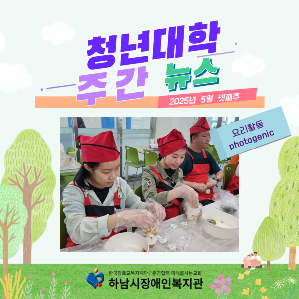요리활동과 같은 재미있는 수업들도 곳곳에 구성되어 있으니 청년대학의 프로그램에 많은 관심 가져주시기 바랍니다.