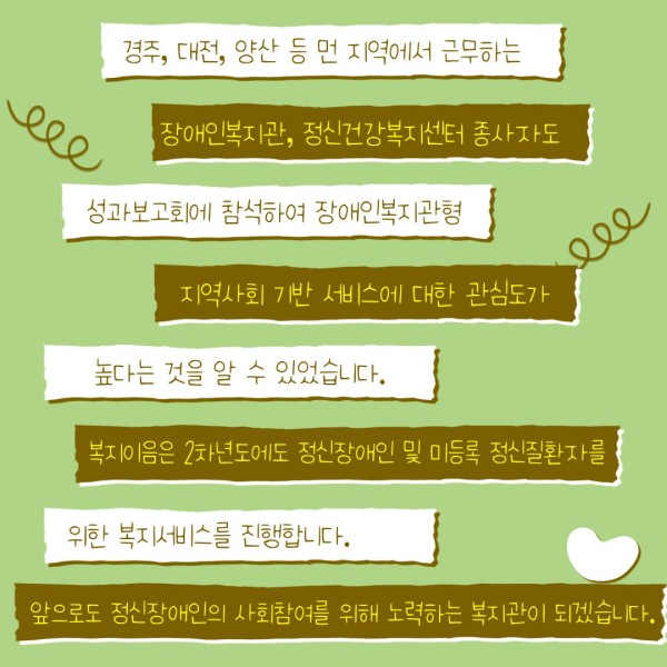 앞으로도 정신장애인의사회참여를 위해 노력하는 복지관이 되겠습니다.
