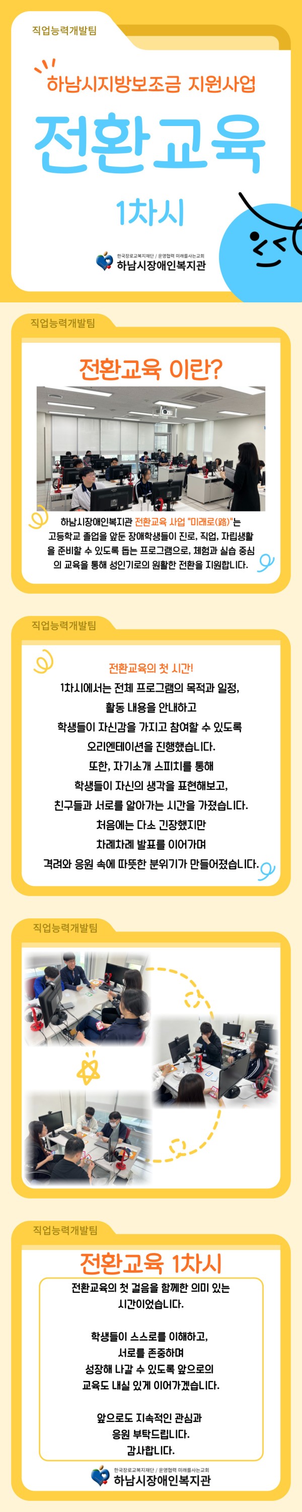 직업능력개발 [직업능력개발팀] 하남시지방보조금지원사업_전환교육 “미래로(路)” 1차시 진행