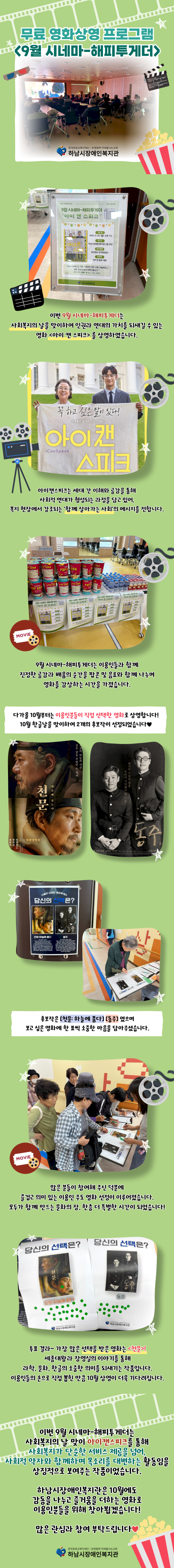 하남시장애인복지관은 10월에도 감동을 나누고 즐거움을 더하는 영화로 이용인분들을 위해 찾아뵙겠습니다!