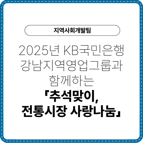 지역사회개발 [지역사회개발팀] 2025년 KB국민은행 강남지역영업그룹과 함께하는「추석맞이, 전통시장 사랑나눔」