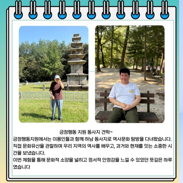 긍정행동지원에서는 이용인들과 함께 하남 동사지로 역사문화 탐방을 다녀왔습니다.