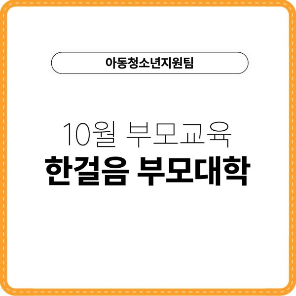 아동청소년 [아동청소년지원팀] 10월 부모교육, 한걸음 부모대학!