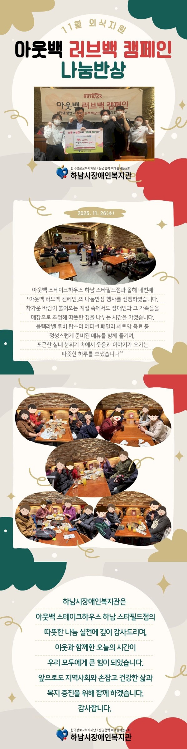 지역사회개발 [지역사회개발팀] 11월 외식지원 '아웃백 러브백 캠페인 나눔반상'