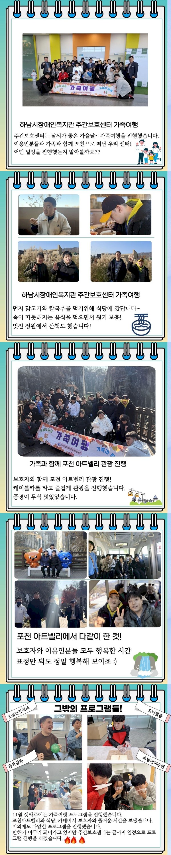 11월 셋쨰주에는 가족여행 프로그램을 진행했습니다.