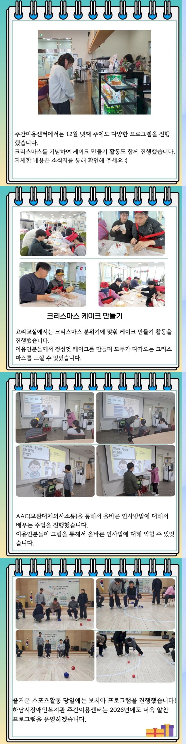 주간 이용센터에서는 12월 넷째주에도 다양한 프로그램을 진행했습니다.