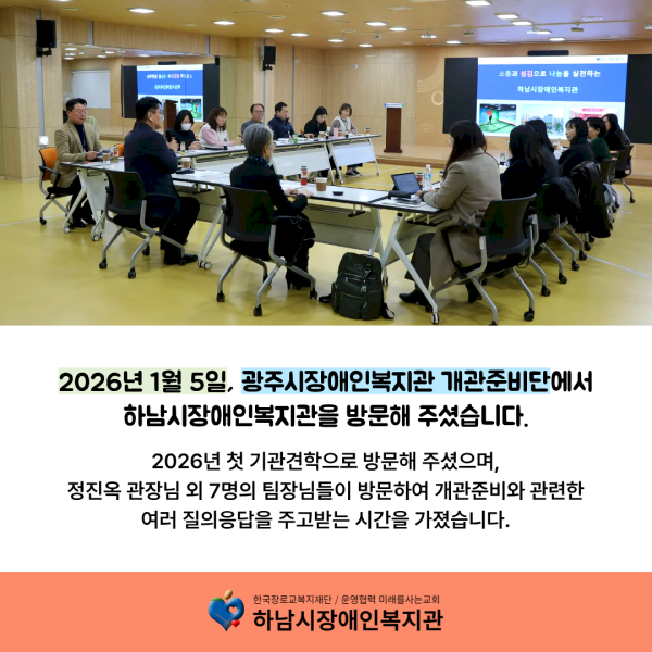 2026년 1월 5일, 광주시장애인복지관 개관준비단에서 하남시장애인복지관을 방문해 주셨습니다.