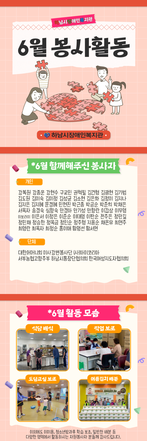 다양한 영역에서 활동하시는 자원봉사자 분들께 감사드립니다.