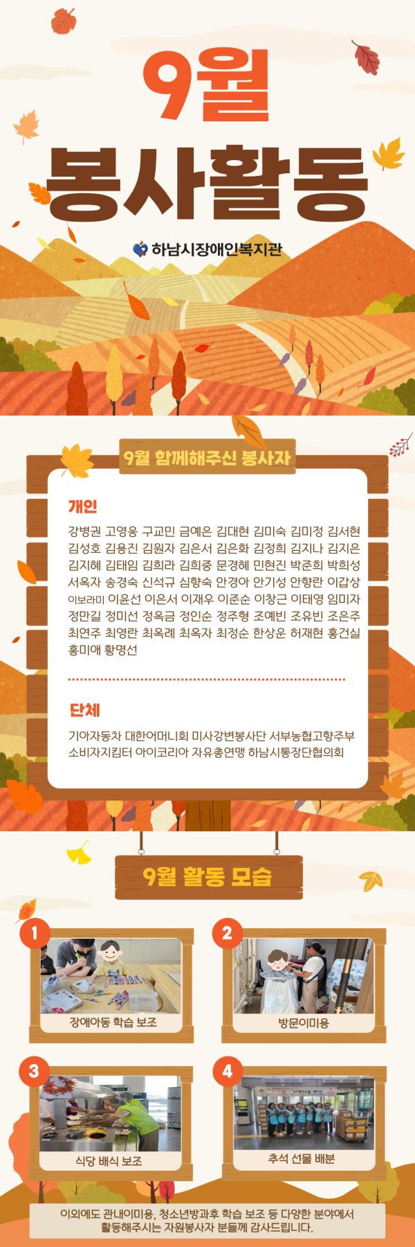 활동해주시는 자원봉사자 분들께 감사드립니다.