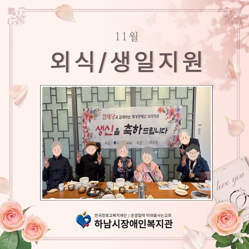 11월 5일, 지역사회개발팀에서는 10월 생신을 맞이하신 재가장애인 어르신들을 대상으로 외식 및 생일지원 서비스를 제공하였습니다.