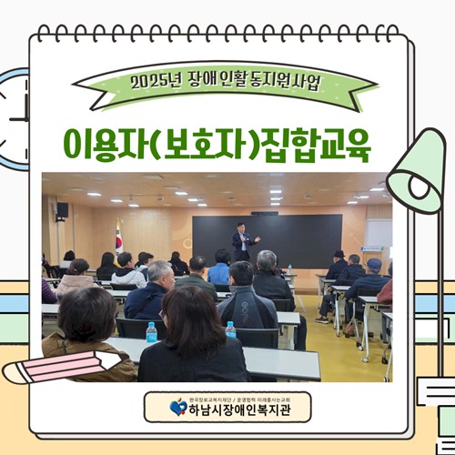 11월 12일, 장애인활동지원서비스를 지원받고 있는 이용자(보호자) 대상으로 이용자 집합교육을 진행하였습니다.