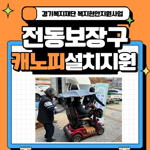 11월 13일, 경기복지재단 복지현안지원사업에 선정되어 기후위기 취약계층을 위한 전동보장구 캐노피 설치지원사업을 진행하였습니다.