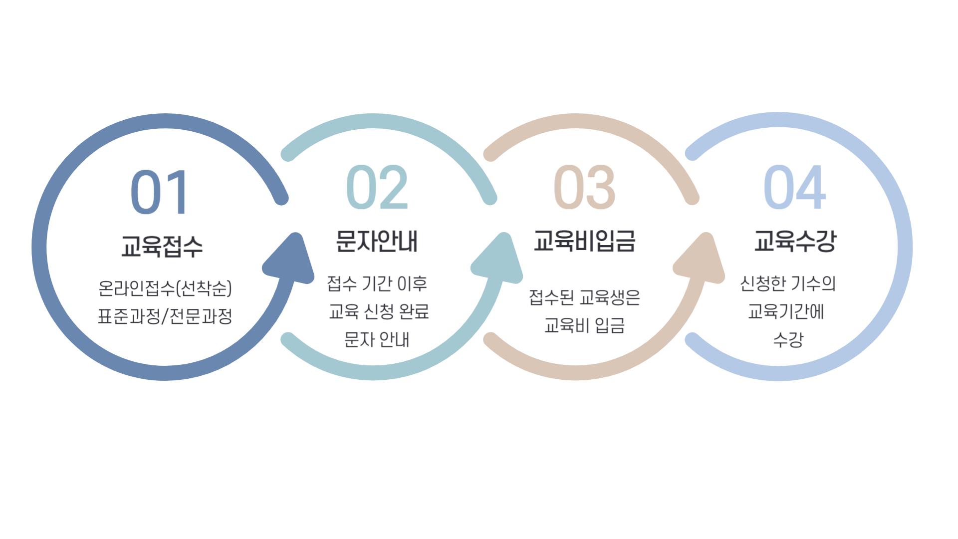 ※ 교육신청자는 교육대상자가 아닙니다. 순차적으로 접수처리 후 선정 대상자는 교육 시작 3주 전 일괄 문자발송할 예정이오니 참고하시기 바랍니다.