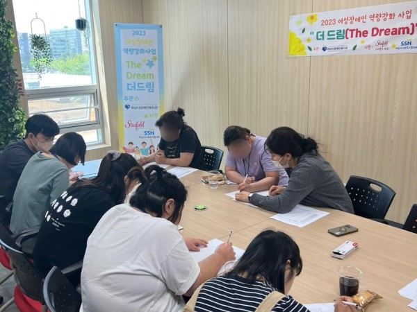 하남시장애인복지관, 여성 장애인 역량강화사업 더 드림(The Dream)으로 자신감UP 페이지 정보 작성자 하남시장애인복지관 작성일23-06-05 19:31 조회수52 본문 하남시장애인복지관은 스타필드 하남과 하남시사회복지협의회에서 주관하는 ‘2023 스타필드하남 후원금 배분’ 사업에 선정되어, 관내 여성장애인 역량강화 프로그램을 오는 10월까지 운영하며 해당 프로그램 진행 중 촬영한 사진입니다.기사원문보기 목록 이전글 하남시장애인복지관, 2023년 치유농업 프로그램 마음치유, 행복나날 운영 23.06.05 다음글 하남시장애인복지관, MOM’s 힐링데이 진행 23.05.30