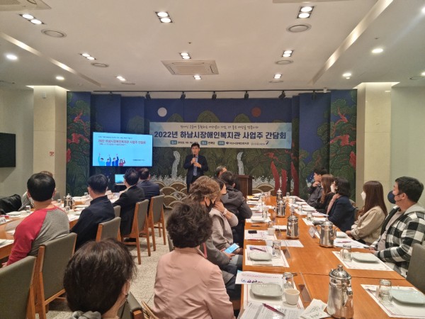 하남시장애인복지관, 2022년 장애인 고용 사업주 간담회 실시 페이지 정보 작성자 하남시장애인복지관 작성일22-10-24 13:46 조회수73 본문 하남시장애인복지관을 통해 장애인 채용을 진행한 사업주를 대상으로 장애인의 취업을 위한 사업체 현장훈련, 장애인 고용을 위한 지속적인 협력관계 유지하고 독려하고자 마련된 ‘2022년 장애인 고용 사업주 간담회’를 진행하며 촬영한 사진입니다. 기사원문보기 목록 이전글 하남시장애인복지관, 모모살롱 어깨동무 예술학교 졸업전시회 개최 22.11.16 다음글 하남시장애인복지관 청년대학 태권도선수단, 경기도장애인생활체육대회 동메달 수상 22.10.24