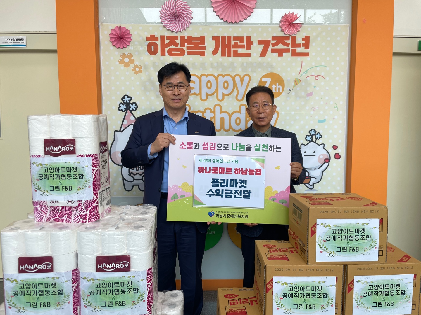 하남농협 하나로마트, 하남시장애인복지관에 생필품 후원 페이지 정보 작성자 하남시장애인복지관 작성일25-04-15 14:05 조회수64 본문 하남시장애인복지관(관장 민복기)은 4월 20일 장애인의 날을 맞아 지역사회로부터 따뜻한 후원품을 전달받아 촬영한 사진입니다.기사원문보기 목록 이전글 하남시장애인복지관, 장애인의 날 기념 '제 1회 하남시 장애인 어울림 걷기 대회' 성료 25.04.15 다음글 익수제약, 하남시장애인복지관에 모과갈근쌍화 500개 후원 25.04.15