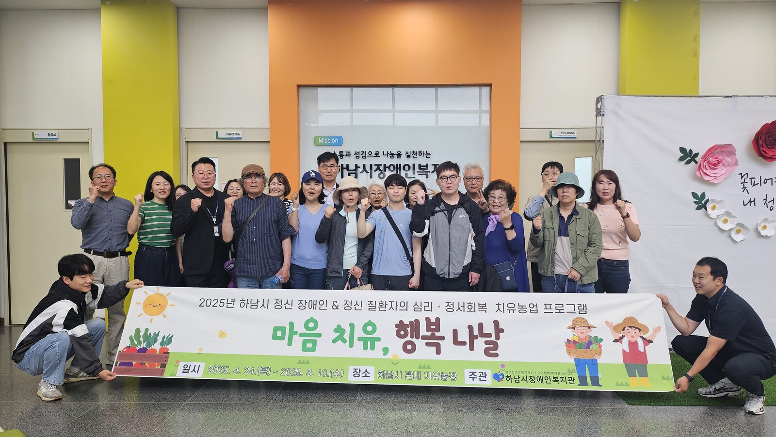 하남시장애인복지관, 정신장애인 및 정신질환자를 위한 2025년 치유농업 프로그램 '마음치유, 행복나날' 운영 페이지 정보 작성자 하남시장애인복지관 작성일25-05-30 10:27 조회수66 본문 하남시장애인복지관은 하남시에 거주하고 있는 정신 장애인 및 정신 질환자 15명을 대상으로 마음치유, 행복나날 프로그을 총 10회기에 걸쳐 운영할 예정이며, 오리엔테이션을 시작하며 촬영한 사진입니다. 기사원문보기 목록 이전글 처갓집양념치킨 미사역점, 153챌린지로 하남시장애인복지관에 치킨 후원 25.05.30 다음글 돌고도네이션, 하남시장애인복지관에 '장애인에게 희망을 전하는 쌀' 정기후원 25.05.21
