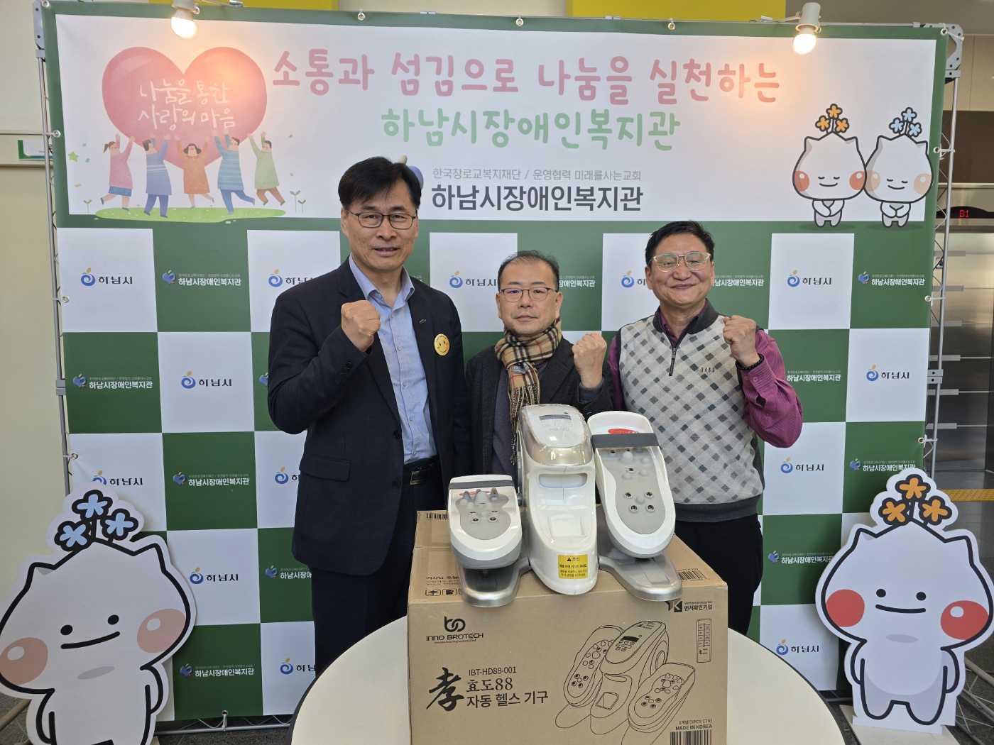 (주)이노브로텍, 하남시장애인복지관에 '자동헬스기구' 기증 페이지 정보 작성자 하남시장애인복지관 작성일25-03-10 14:14 조회수71 본문 ㈜이노브로텍(대표 오학철)이 장애인 이용자들의 건강 증진을 위해 ‘효도88 자동헬스기구’를 하남시장애인복지관에 기증하여 촬영한 사진입니다.기사원문보기 목록 이전글 하남시장애인복지관, 장애인과 비장애인 함께한 ‘제1회 휠리엑스 플레이 e스포츠 대회’ 성황리에 종료 25.03.12 다음글 한국이러닝인재개발원, 하남시장애인복지관에 후원금 1천만원 전달 25.03.06