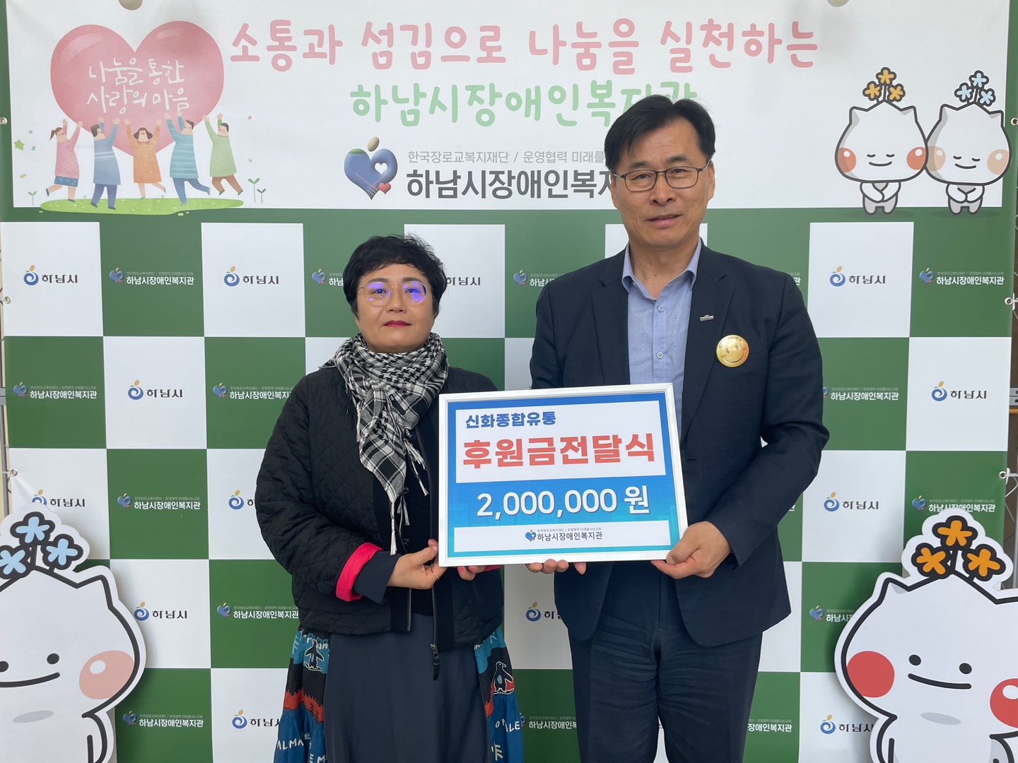 신화종합유통, 하남시장애인복지관 '제45회 장애인의 날 행사'에 기부금 전달 페이지 정보 작성자 하남시장애인복지관 작성일25-03-18 17:30 조회수77 본문 신화종합유통(대표 이성용)이 '제45회 장애인의 날 행사'를 기념하여 복지관에 200만원을 기부하여 촬영한 사진입니다. 기사원문보기 목록 이전글 웰니스케어, 하남시장애인복지관 '제45회 장애인의 날 행사'에 운동용품 기증 25.03.18 다음글 하남장애인복지관 주간보호센터, 하남시의회 방문해 장애인 참정권 의식 높여 25.03.12