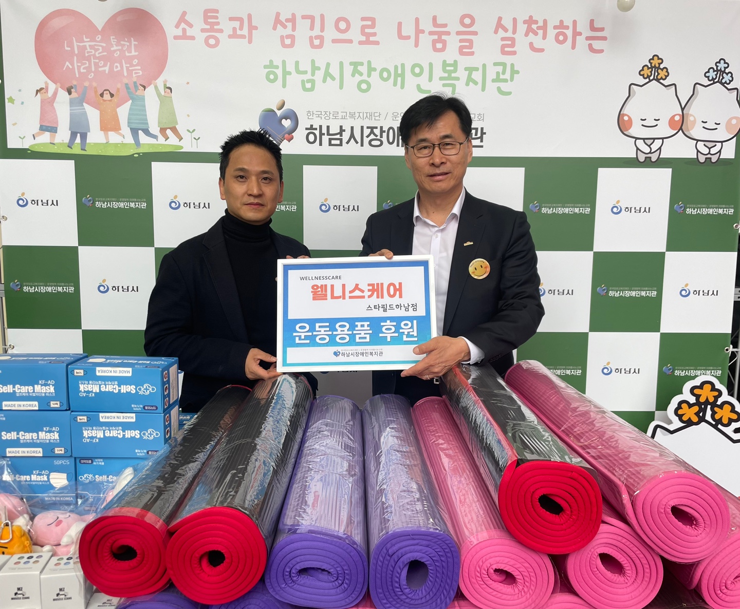 웰니스케어, 하남시장애인복지관 '제45회 장애인의 날 행사'에 운동용품 기증 페이지 정보 작성자 하남시장애인복지관 작성일25-03-18 17:42 조회수70 본문 웰니스케어 스타필드하남점(대표 정성배)이 장애인들의 건강증진을 위하여 복지관에 요가매트, 맛사지볼 등 운동용품을 기부하여 따뜻한 나눔을 실천함에 따라 촬영한 사진입니다.기사원문보기 목록 이전글 하남시장애인복지관, 실학박물관과 장애인의 문화복지 실현을 위한 업무협약 체결 25.03.21 다음글 신화종합유통, 하남시장애인복지관 '제45회 장애인의 날 행사'에 기부금 전달 25.03.18