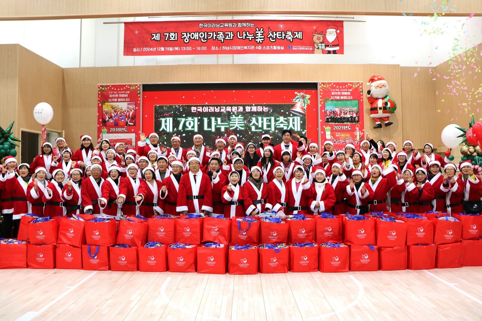 하남시장애인복지관, 나누美 산타축제로 따뜻한 성탄 선물 전달 페이지 정보 작성자 하남시장애인복지관 작성일25-01-14 09:27 조회수81 본문 성탄절을 맞아 지역 내 재가 장애인 100가정에 사랑의 성탄 선물을 전달하는 ‘나누美 산타축제’를 성황리에 마치며 촬영한 사진입니다. 기사원문보기 목록 이전글 하남시장애인복지관, 'KB국민은행 후원 설맞이 전통시장 사랑나눔' 행사진행 25.01.31 다음글 하남시장애인복지관 "하남시중학교학부모폴리스단과 장애인식개선캠페인" 진행 25.01.14