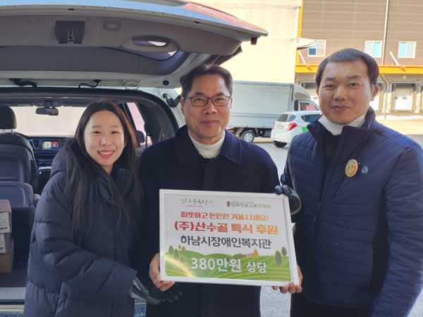 ㈜ 산수골목장, 하남시장애인복지관 380만원 상당 특식 후원 페이지 정보 작성자 하남시장애인복지관 작성일24-02-16 15:38 조회수79 본문 (주)산수골목장(대표 최상기)은 지난 16일 총회 한국장로교복지재단(대표이사 김정호)과 업무협약을 맺고 7종의 가공식품 3,400여 박스를 전달하였으며, 이에 한국장로교복지재단 산하시설인 하남시장애인복지관(관장 민복기)에 특식 27박스(380만원 상당)특식 후원 나눔을 진행하여 촬영한 사진입니다.기사원문보기 목록 이전글 대한불교조계종 천년고찰 동사 상우 주지스님, 하남시장애인복지관에 쌀(10kg) 50포 후원 24.02.16 다음글 미사강변요양병원 하남시장애인복지관에 라면 200박스 후원품 전달 24.01.08