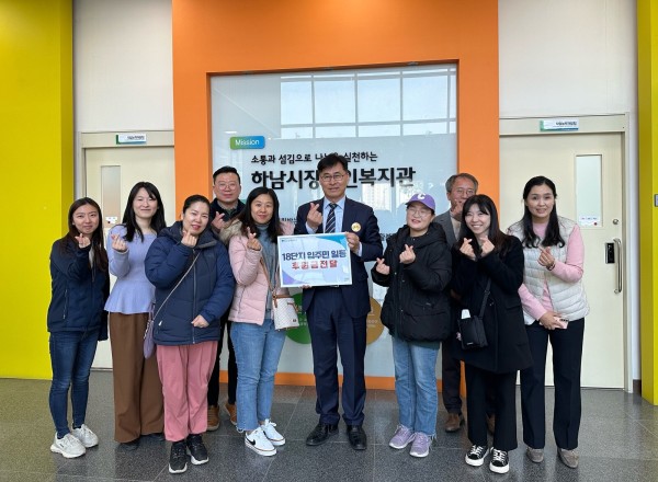 미사강변 센텀팰리스 입주자 대표회 윤슬누리마을공동체, 하남시장애인복지관에 기부금 전달 페이지 정보 작성자 하남시장애인복지관 작성일24-03-19 13:11 조회수55 본문 미사강변센텀팰리스 입주자 대표회 및 윤슬누리마을공동체(대표 : 강애란)가 공동으로 주관한 아파트내 벼룩시장으로 얻은 수익금 및 참가비 전액을 하남시장애인복지관에 후원하고 전달식을 가지며 촬영한 사진입니다.기사원문보기 목록 이전글 하남시장애인복지관, 개관 6주년 기념 행사 성료 24.04.03 다음글 하남시장애인복지관 "오감으로 만나는 세상" 상상누림터 연중 운영 24.03.13