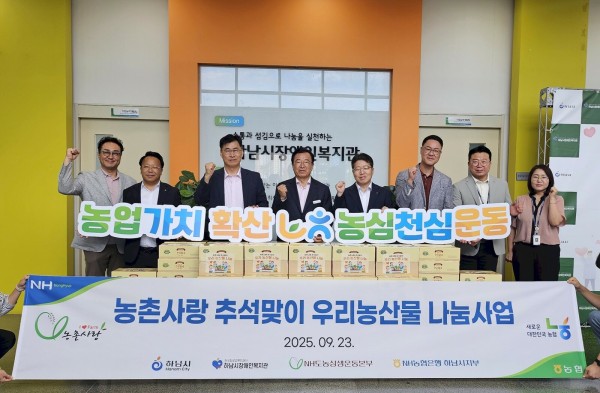 하남시장애인복지관, (사)NH도농상생운동본부 '농촌사랑 추석맞이 우리농산물 나눔사업' 우리농산물 꾸러미 180개 전달식 진행 페이지 정보 작성자 하남시장애인복지관 작성일25-09-26 11:51 조회수70 본문 하남시장애인복지관이 (사)NH도농상생운동본부가 주관한 ‘농촌사랑 추석맞이 우리농산물 나눔사업’을 통해 건강 잡곡으로 구성된 농산물 꾸러미 180세트를 전달받으며 촬영한 사진입니다.기사원문보기 목록 이전글 서울뉴잠전라이온스클럽 354-D지구, 하남시장애인복지관에 추석맞이 후원품 전달 및 자원봉사 진행 25.09.29 다음글 하남시장애인복지관, 한국주거복지사회적협동조합이 함께하는 ‘2025년 행복한 家 프로젝트’ 공모사업 선정 25.09.12