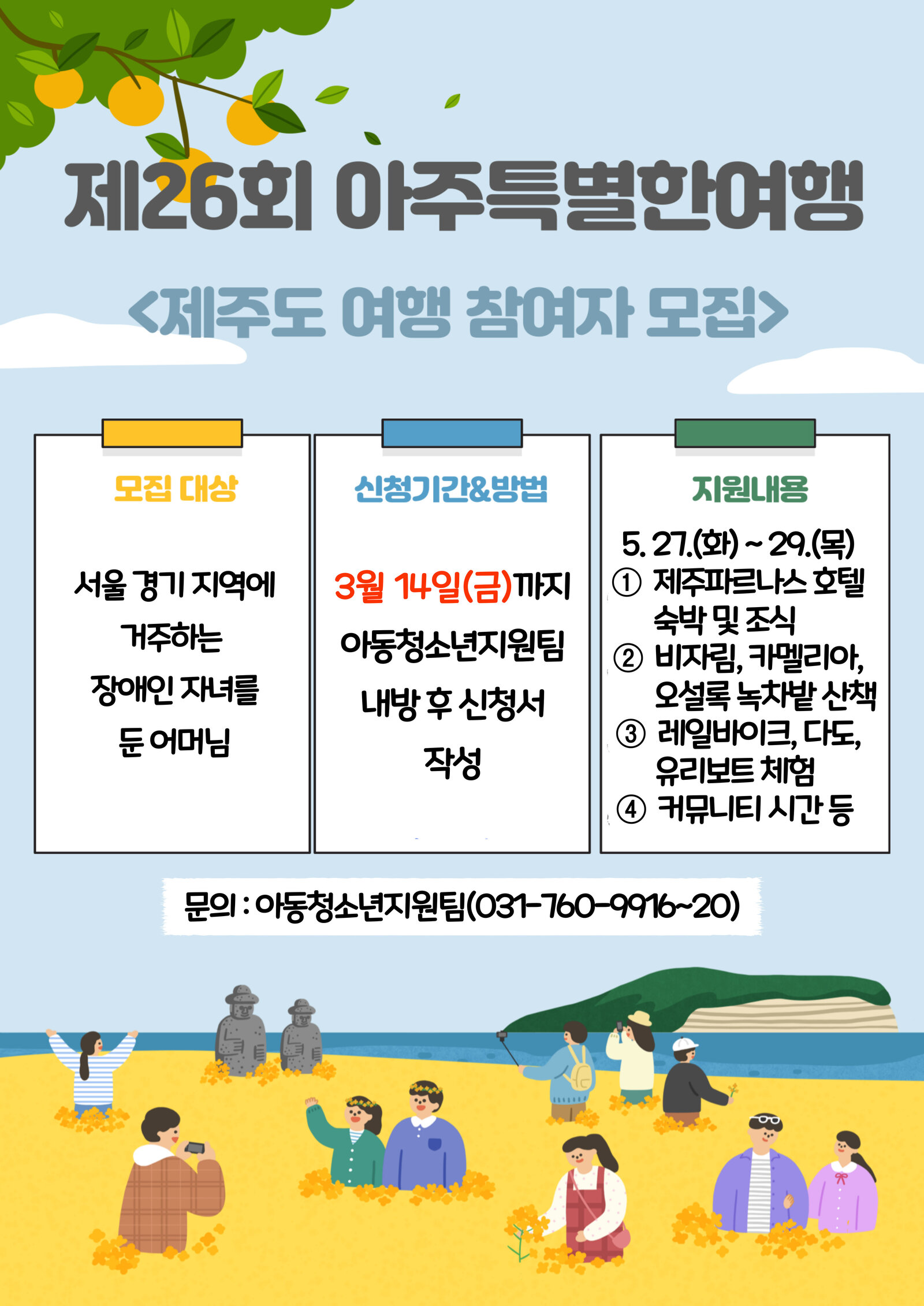 아주복지재단과 함께하는 제26회 아주특별한여행 - 제주도 여행 참여자를 모집합니다!