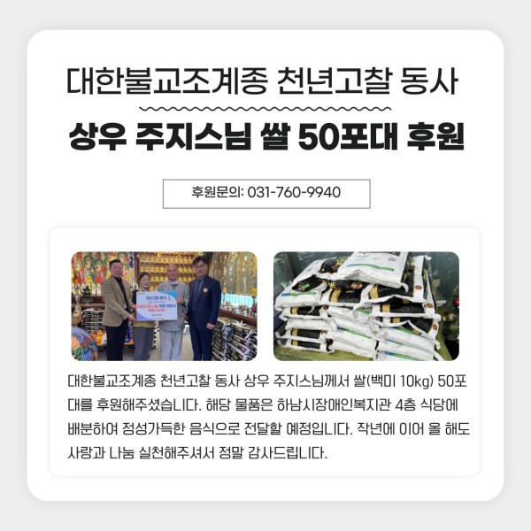 대한불교조계종 천년고찰 동사 상우 주지스님께서 쌀(백미 10kg) 50포