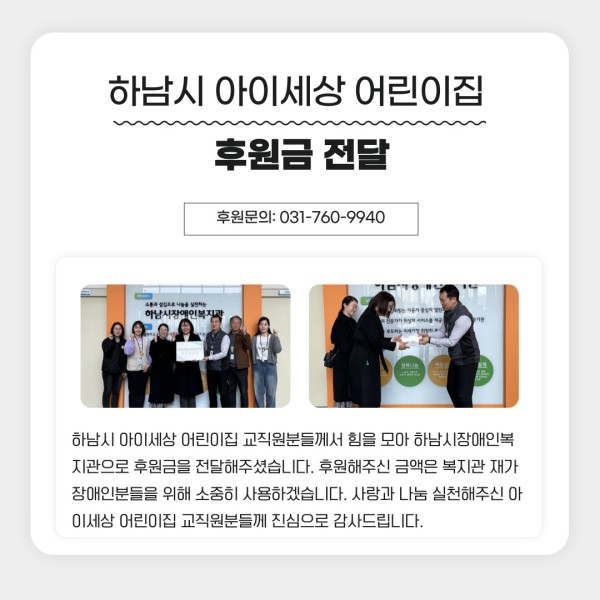 하남시 아이세상 어린이집 교직원분들께서 힘을 모아 하남시장애인복