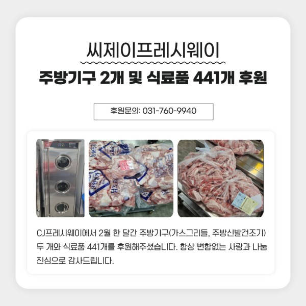 후원내역 (주) CJ프레시웨이 주방기구 및 식료품 후원