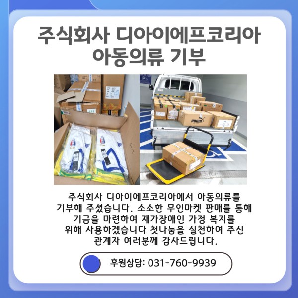 후원내역 (주)디아이에프코리아_아동의류 기부