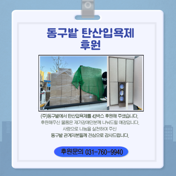 (주)동구밭에서 탄산입욕제를 43박스 후원해 주셨습니다.