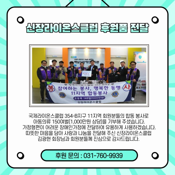 후원내역 신장라이온스클럽 -아동복 148벌 후원