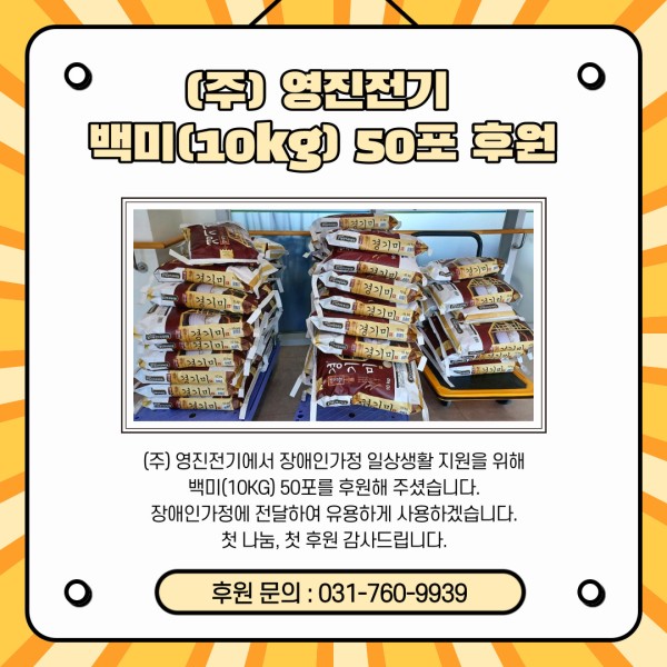 후원내역 (주)영진전기-백미(10KG) 50포 기부