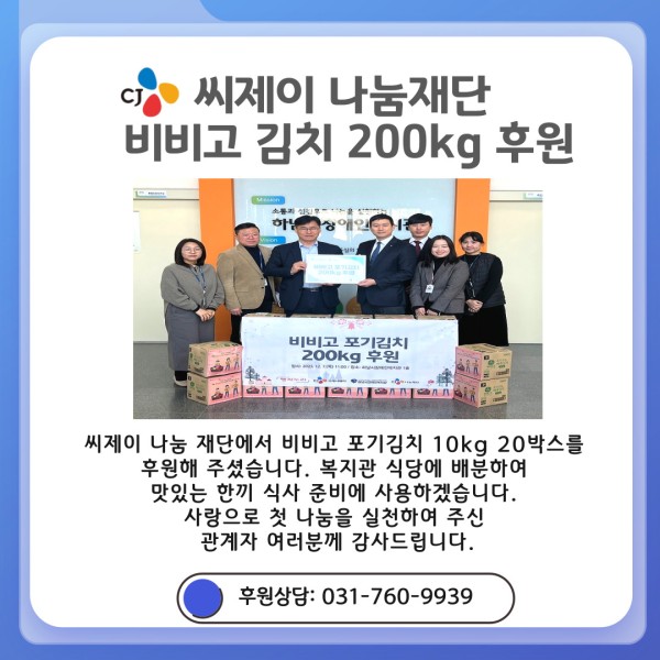 후원내역 씨제이 나눔재단-비비고 포기김치 200kg 후원
