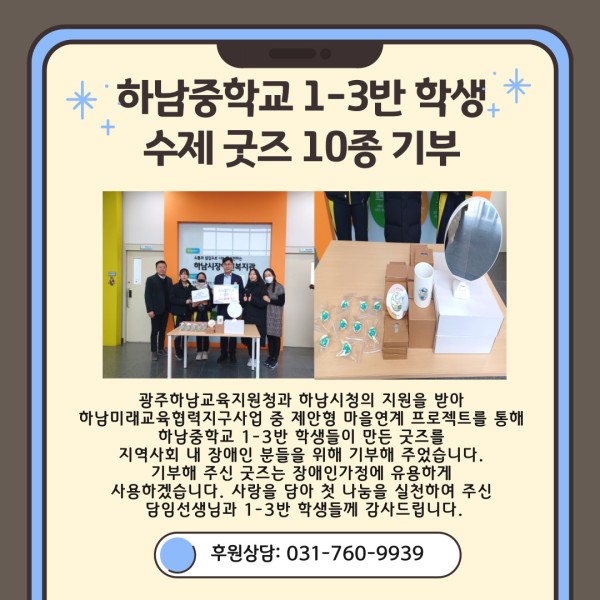 후원내역 하남중학교 1-3반 수제 굿즈 기부