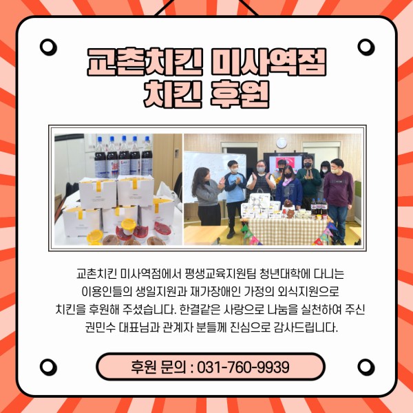 교촌치킨 미사역점에서 평생교육지원팀 청년대학에 다니는