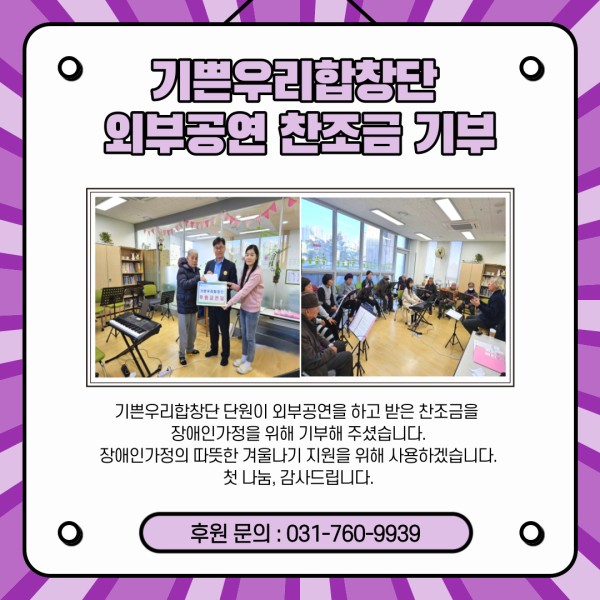 기쁜우리합창단 단원이 외부공연을 하고 받은 찬조금을