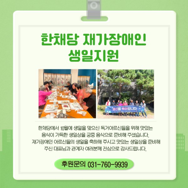 재가장애인 어르신들의 생일을 축하해 주시고 맛있는 생일상을 준비해