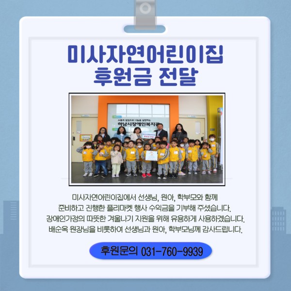 장애인가정의 따뜻한 겨울나기 지원을 위해 유용하게 사용하겠습니다.